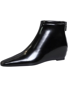 Женские черные кожаные ботильоны на танкетке с заостренным носком, удобные, с нескользящей подошвой и задней молнией, повседневные