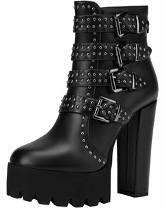 Женские готические ботильоны на платформе с толстым высоким каблуком, черные, с заклепками и пряжкой, массивные готические ботинки сзади на молнии, праздничные панк-туфли