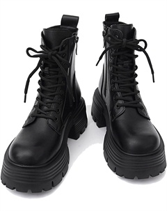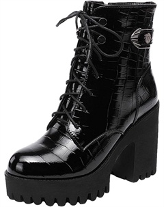 Женские ботильоны на платформе с высоким каблуком, удобные, с нескользящей подошвой, боковой молнией, массивным каблуком и протекторной подошвой, ботинки в стиле милитари, Black