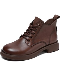 Женские короткие ботильоны на низком каблуке из натуральной кожи, удобные, легкие, с круглым носком, шнуровкой, мягкой подошвой и плюшевой подкладкой для ходьбы, Brown No-Plush Lining
