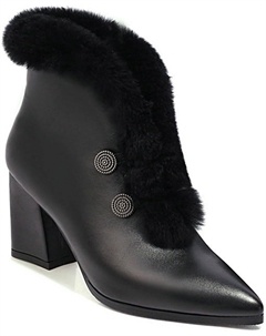 Женские ботильоны с острым носком и толстым каблуком, модные, с нескользящей подошвой, теплые, с боковой молнией, короткие плюшевые зимние ботинки, Black