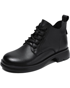 Женские кожаные ботильоны с круглым носком, платформой и плюшевой подкладкой, удобные и легкие, на шнуровке, рабочие ботинки для офиса и вождения, Black