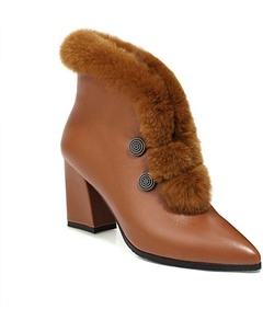 Женские ботильоны с острым носком и толстым каблуком, модные, с нескользящей подошвой, теплые, с боковой молнией, короткие плюшевые зимние ботинки, Brown