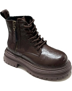 Модные женские ботинки с низким каблуком, кожаные, легкие, на шнуровке с боковой молнией, массивным каблуком и рифленой подошвой, ботильоны, Brown