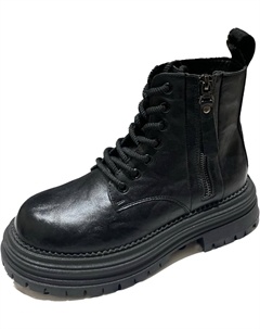 Модные женские ботинки с низким каблуком, кожаные, легкие, на шнуровке с боковой молнией, массивным каблуком и рифленой подошвой, ботильоны, Black