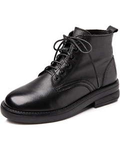 Женские короткие ботильоны на низком каблуке из натуральной кожи, удобные, легкие, с круглым носком, шнуровкой, мягкой подошвой и плюшевой подкладкой для ходьбы, Black No-Plush Lining