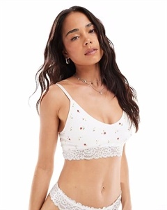 2 779 ₽ 3 163 ₽ New look Бесшовный ребристый бюстгальтер-бралетт с принтом клубники, белый цвет Цвет: Белый