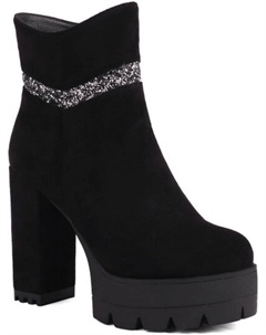 Женские модные блестящие босоножки на высокой платформе с толстым каблуком, ботильоны до щиколотки с круглым носком, боковой молнией и блестящими нашивками для платья, Suede Black
