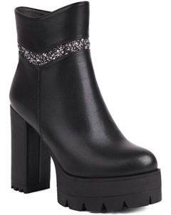 Женские модные блестящие босоножки на высокой платформе с толстым каблуком, ботильоны до щиколотки с круглым носком, боковой молнией и блестящими нашивками для платья, Black