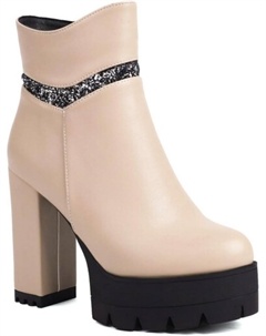 Женские модные блестящие босоножки на высокой платформе с толстым каблуком, ботильоны до щиколотки с круглым носком, боковой молнией и блестящими нашивками для платья, Khaki
