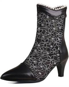 Женские сандалии-босоножки на низком каблуке с закрытым носком, кружевные, с молнией сзади, короткие ботильоны на щиколотку, модные сетчатые гладиаторские летние сандалии, Black