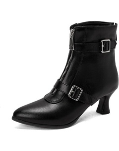 Женские босоножки с низким каблуком, задней молнией, закрытым носком, массивной пряжкой, короткие ботильоны для модного вечера, вечеринки или выпускного, Black