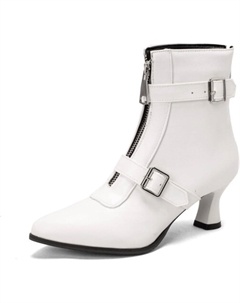 Женские босоножки с низким каблуком, задней молнией, закрытым носком, массивной пряжкой и короткой длиной, модная обувь для вечеринок и выпускных, White