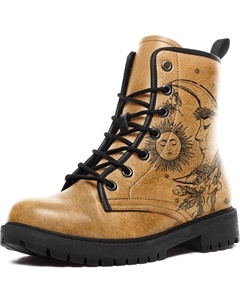 Женские небесные боевые ботинки - босоножки на щиколотку из веганской кожи «Солнце и Луна», модные готические бохо ботинки на шнуровке с массивной подошвой, Black-Golden3