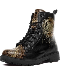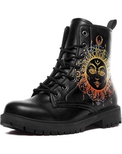 Женские небесные боевые ботинки - босоножки на щиколотку из веганской кожи «Солнце и Луна», модные готические бохо ботинки на шнуровке с массивной подошвой, Black-Golden2
