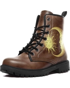 Женские небесные боевые ботинки - босоножки на щиколотку из веганской кожи «Солнце и Луна», модные готические бохо ботинки на шнуровке с массивной подошвой, Brown-Black