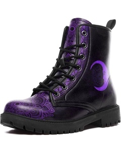 Женские небесные боевые ботинки - босоножки на щиколотку из веганской кожи «Солнце и Луна», модные готические бохо ботинки на шнуровке с массивной подошвой, Black-Purple