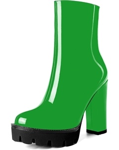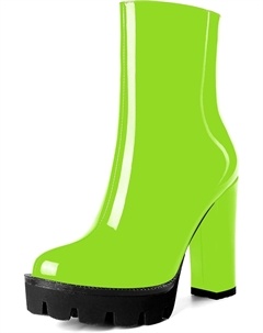Женские повседневные уличные босоножки с круглым носком, блестящей платформой, молнией, однотонные лакированные ботильоны на высоком каблуке 4,7 дюйма, Lime Green