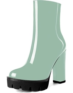 Женские повседневные уличные босоножки с круглым носком, блестящей платформой, молнией, однотонные лакированные ботильоны на высоком каблуке 4,7 дюйма, Turquoise