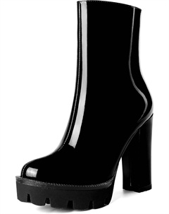 Женские повседневные уличные босоножки с круглым носком, блестящей платформой, молнией, однотонные лакированные ботильоны на высоком каблуке 4,7 дюйма, Black