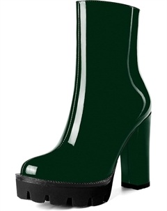 Женские повседневные уличные босоножки с круглым носком, блестящей платформой, молнией, однотонные лакированные ботильоны на высоком каблуке 4,7 дюйма, Dark Green