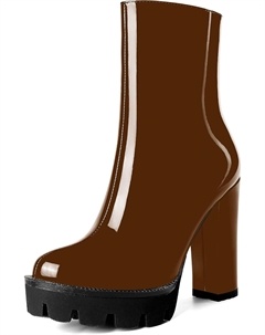 Женские повседневные уличные босоножки с круглым носком, блестящей платформой, молнией, однотонные лакированные ботильоны на высоком каблуке 4,7 дюйма, Brown