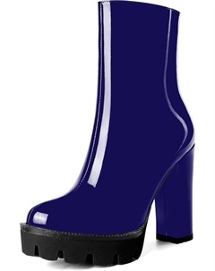 Женские повседневные уличные босоножки с круглым носком, блестящей платформой, молнией, однотонные лакированные ботильоны на высоком каблуке 4,7 дюйма, Royal Blue