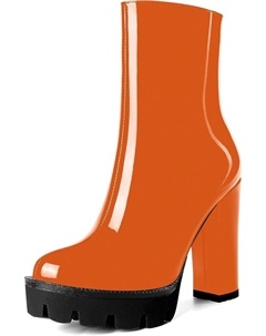 Женские повседневные уличные босоножки с круглым носком, блестящей платформой, молнией, однотонные лакированные ботильоны на высоком каблуке 4,7 дюйма, Orange