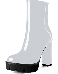 Женские повседневные уличные босоножки с круглым носком, блестящей платформой, молнией, однотонные лакированные ботильоны на высоком каблуке 4,7 дюйма, White