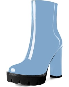 Женские повседневные уличные босоножки с круглым носком, блестящей платформой, молнией, однотонные лакированные ботильоны на высоком каблуке 4,7 дюйма, Light Blue