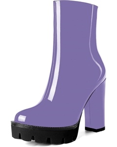 Женские повседневные уличные босоножки с круглым носком, блестящей платформой, молнией, однотонные лакированные ботильоны на высоком каблуке 4,7 дюйма, Lavender