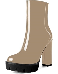 Женские повседневные уличные босоножки с круглым носком, блестящей платформой, молнией, однотонные лакированные ботильоны на высоком каблуке 4,7 дюйма, Beige