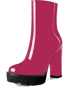 Женские повседневные уличные босоножки с круглым носком, блестящей платформой, молнией, однотонные лакированные ботильоны на высоком каблуке 4,7 дюйма, Magenta