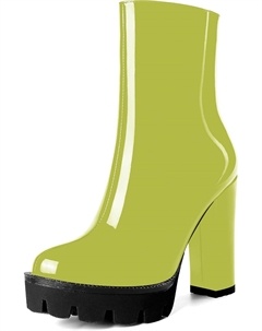 Женские повседневные уличные босоножки с круглым носком, блестящей платформой, молнией, однотонные лакированные ботильоны на высоком каблуке 4,7 дюйма, Yellow Green