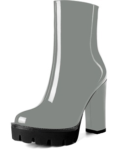Женские повседневные уличные босоножки с круглым носком, блестящей платформой, молнией, однотонные лакированные ботильоны на высоком каблуке 4,7 дюйма, Grey