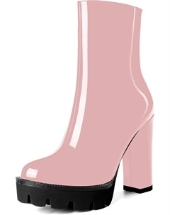 Женские повседневные уличные босоножки с круглым носком, блестящей платформой, молнией, однотонные лакированные ботильоны на высоком каблуке 4,7 дюйма, Pink